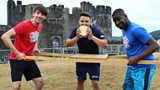 Ed Petrie and friends take part in a big cheese race in Caerphilly.
