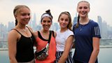 The girls' team and presenter Camille are in Malaysia learning the sport of lion dancing.