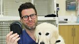 1/10James operates on a greedy puppy that has scoffed a headphone.(R)