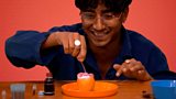 3/15Dr Chris dresses up as a giant tongue in the lab to show how you eat food.