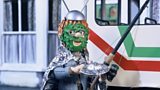 Robbie Rotten's vicious robotic dog attacks everyone while Sportacus relaxes.