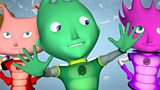 33/52When the Grimbots build their own Easter Island statue, it collapses.(R)