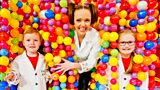 6/20Twins Daisy and Lily play on the beach and make pretend soup in their toy kitchen.(R)
