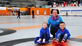 Experimenters Emily and Marzouq visit a curling rink and have a go at sliding themselves.(R)