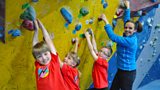 Experimenters Evie, Sonny and Will meet a para-climbing champion at a climbing wall.(R)