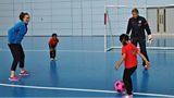Experimenters Kingsley and Safiya do an experiment to see why goalkeepers are important.(R)