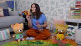 21/24Justin has lots of autumn fun with his friends. Mr Tumble clears up the fallen leaves.(R)