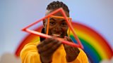 Explore a waitress made of beads and watch as a cheeky chameleon plays with a frog.(R)