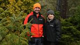3/26Calum Clunie and Lizzie Schofield unwrap dahlias after a winter in the dark.(R)
