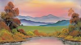 41/52Bob Ross paints a scene of distant sloping hills and a peaceful nearby lake.(R)