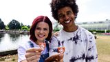 Lindsey and Radzi celebrate the orange badge from the Royal Botanic Gardens.(R)