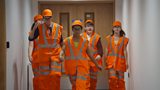 The kids prove they're on track at the new Elizabeth Line train depot in London.(R)
