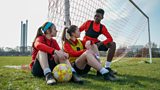Riley helps the team get ready for competition by doing anti-bullying exercises.(R)