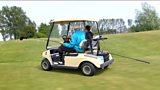 Abby and Shini go head-to-head in a powerchair football challenge.(R)