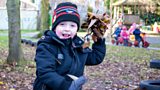1/20The children are helping to clear up all the leaves that have fallen onto the paths.(R)