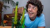 Explore a food mosaic of a cat and mouse and watch as a chameleon plays with a pineapple.