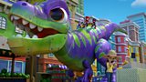 The team take on a rampaging dinosaur. Spidey has to deliver a cake for Hulk's birthday.