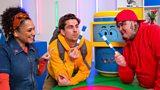 The Numberblocks play a game of bounceball, with Even Tops versus Odd Blocks.(R)