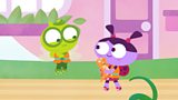 13/25The Twirlywoos are in a park, hiding under a pile of leaves to avoid the park keeper.(R)