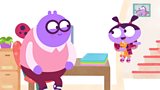 3/26Sula paints Bing to look like Biteysaurus, but upsets Bing by accidentally adding purple.(R)