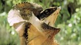 Mae'r fadfall hon yn byw yn fforestydd poeth Awstralia a Phapwa Gini Newydd. The frille...