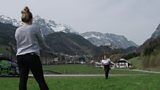 Dilynwn Acer ac Emily sy'n helpu hyfforddi disgyblion iau'r ysgol a Llinos Cleary, yr a...(A)