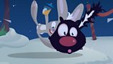 Mae Smotyn yn dal annwyd gan bod ei ogof yn gadael dwr i mewn. Mae'n cael gwahoddiad i ...(A)