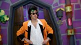 All Boris sydd wedi gwisgo fel Fflach Fflopfop, seren enwog sinemâu Treblew berswadio'r...(A)