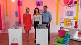 Mae Nia Parry'n twrio drwy ddillad Gwenno Saunders, Darran Phillips a Gwenfudd James. W...(A)