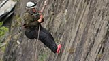 Mae'r plant yn abseilio i lawr Pont Gludo Casnewydd yn y sialens unigol cyn mentro i'r ...