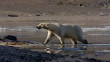 Mae'r arth wen urddasol yn feistres ar hela ar rew ond mae'r rhew yn amddifadu creaduri...(A)
