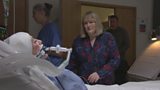 Aiff Eileen a Jim i Ffrainc i fod wrth ochr gwely Sioned, sydd yn ddifrifol wael ar ôl ...