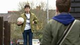 Mae Carwyn a Gwenno'n cael trafferth mawr wrth wneud eu gorau i gael trefn ar Iestyn; a...(A)