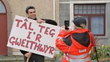 Nid yw Dai yn hapus pan mae Mathew yn cynnal protest o flaen APD. Ceisia Guto berswadio...