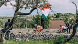Mae'r pentrefwyr yn helpu Magi gasglu cnwd o fefus. Yn anffodus, wedi damwain gyda phêl...(A)