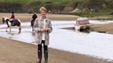 Mae Llew yn poeni. Adeiladodd gastell tywod hyfryd ar y traeth ond mae wedi diflannu! L...(A)
