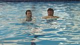A fydd Jim yn llwyddo i gadw ei ben uwchben y dwr yn y pwll nofio? Caiff Izzy ei siomi ...