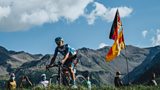Diweddglo brig-fynydd cyntaf y daith, i'r cyrchfan sgio yn Ocières-Merlette. A summit f...