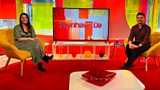 Y tro hwn, gyda'r canwr a chyflwynydd Aled Jones a'r actores Andria Doherty (It's a Sin...