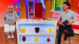 Wrth gyfuno syniadau pawb am eitemau newydd mae Dewi'n creu sioe a hanner. Dewi tries t...(A)
