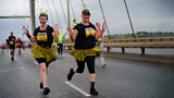 Marathon cenedlaethol Cymru, sy'n digwydd yn ninas hanesyddol Casnewydd. Elite racers h...(A)