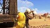 Anturiaethau Oscar y fadfall a'i ffrindiau yn yr anialwch chwilboeth. A cartoon followi...(A)