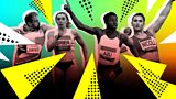 Mae Siôn yn dyfarnu gêm bêl-droed, ond heb y cit cywir, mae'r chwaraewyr y ei chael hi'...(A)