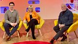 Y gwesteion tro ma yw mewnwr y Scarlets a Chymru, Gareth Davies, a'r gyflwynwraig, Hele...