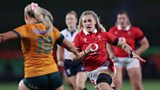 Dangosiad o'r gêm Rygbi WXV rhwng Awstralia a Chymru a chwaraewyd yn gynharach heddiw y...