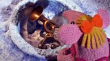 On a very cold day, the Clangers knit coats to help keep the Skymoos warm.(R)