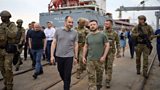 President Zelensky appears at a Black Sea port amid optimism about the first shipment