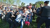 Hungarian authorities use tear gas and water cannon as anger breaks out at Serbian border