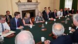 UK Prime Minister Theresa May tells her MPs she'll serve them as long as they demand