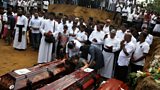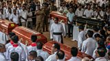 Sri Lanka holds its first mass funeral for some of the 310 people killed on Sunday